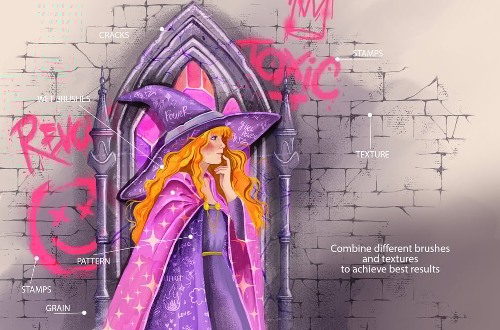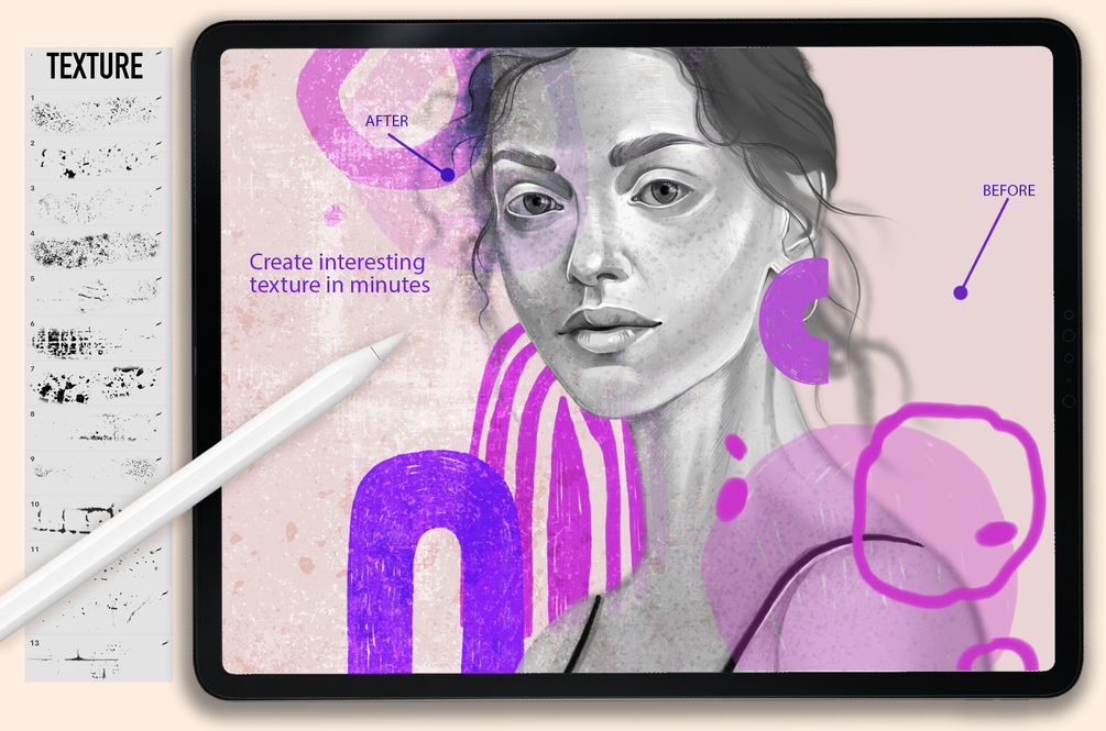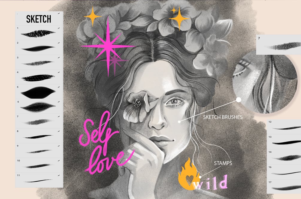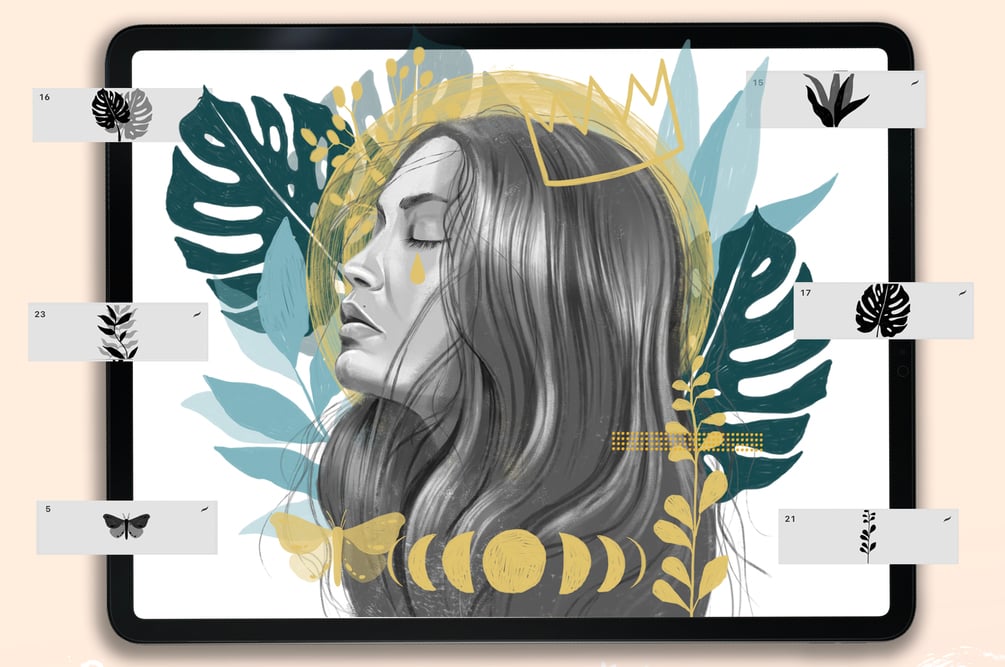 Unleash your creativity and combine all the brushes inside Procreate Creative Brushbox. Mix styles and textures, combine them in your unique way to create truly creative artworks.